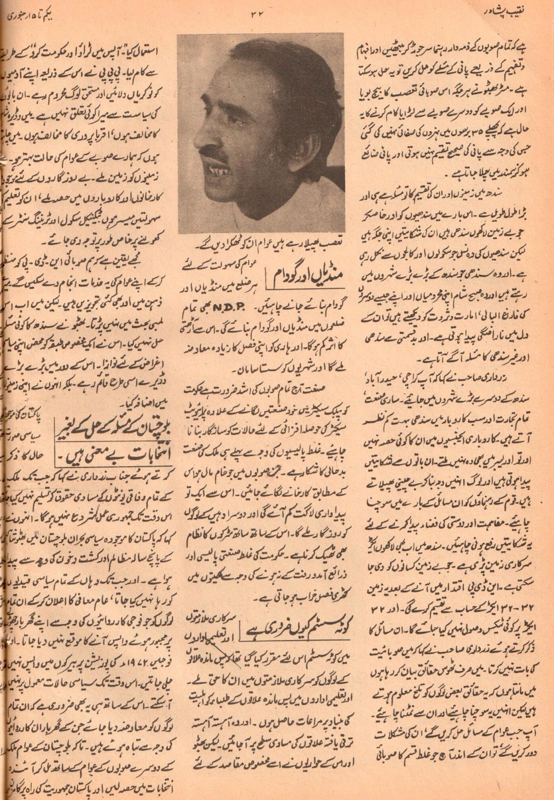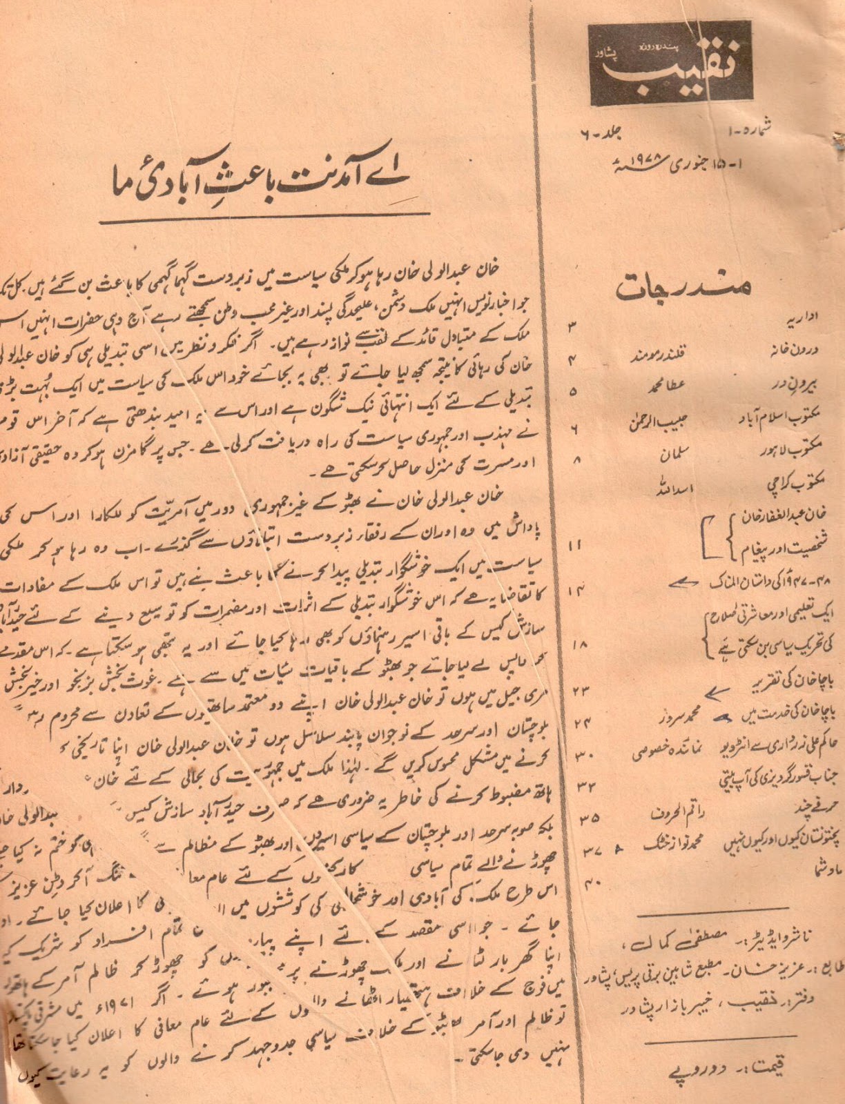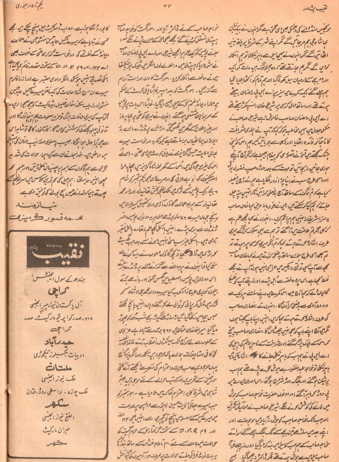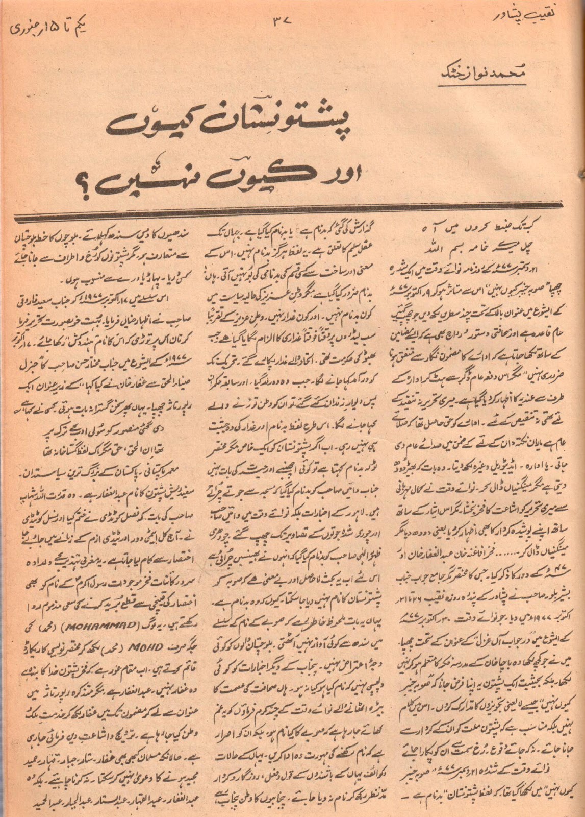 Naqeeb fortnightly published from Peshawar for around 2 years in late 1970s. Mustafa Kamal who was son of renowned journalists Master Khan Gul (who ran Bang-e-Haram) published it. Its leanings were progressive leftist. Would be posting more also.