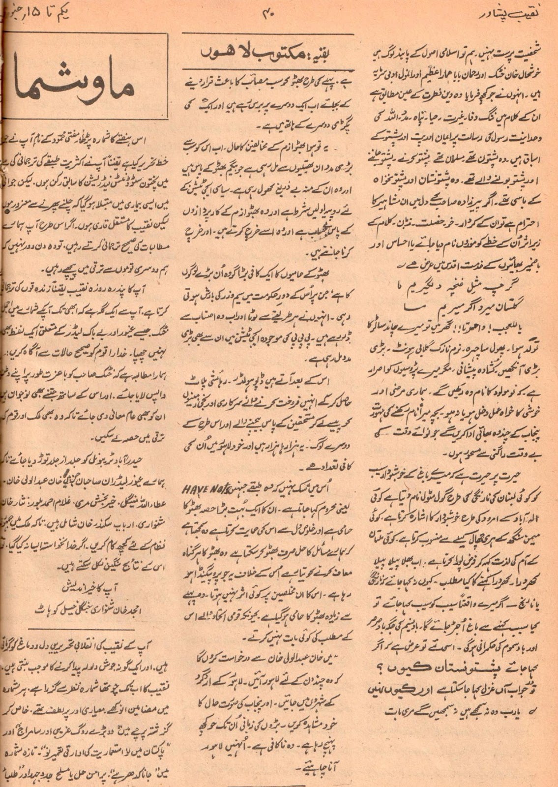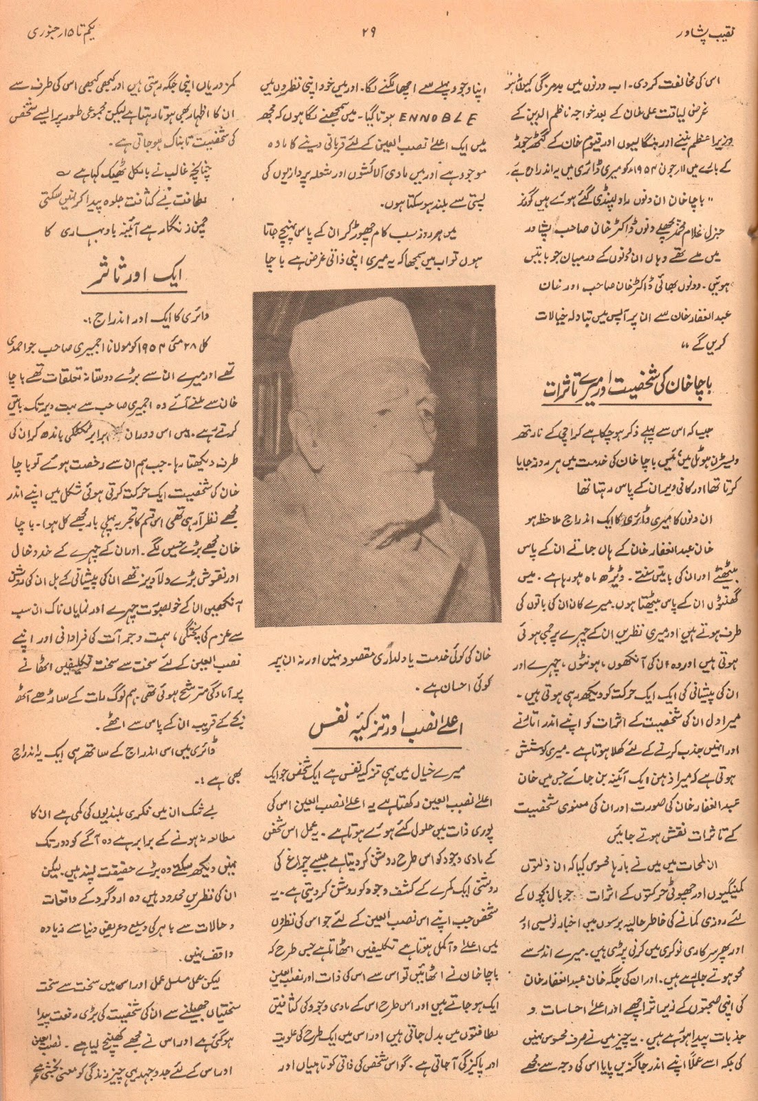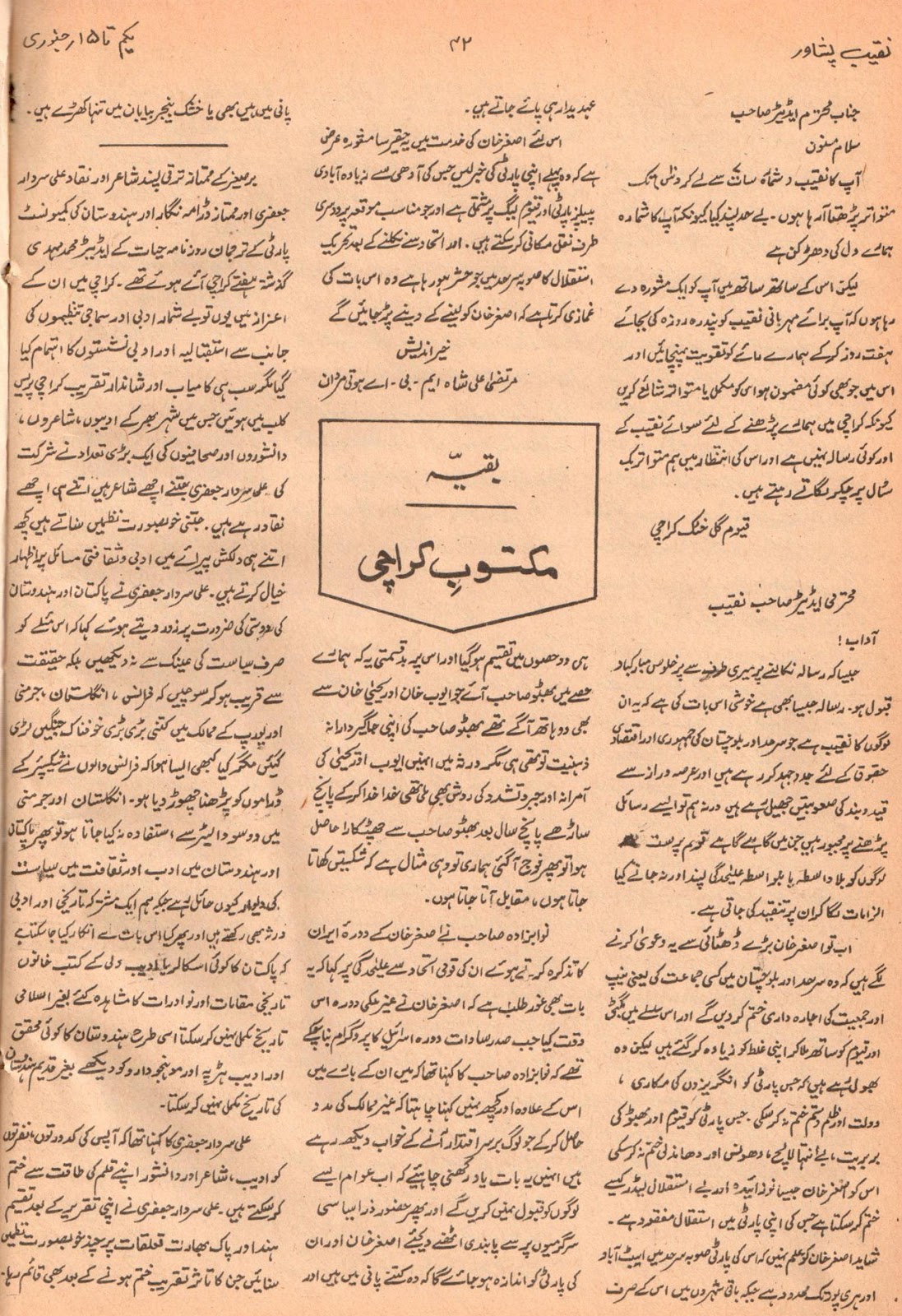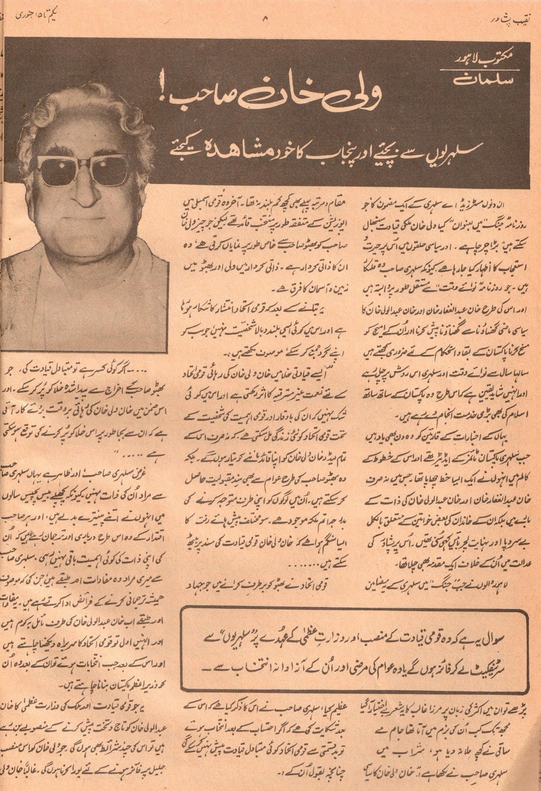 Naqeeb fortnightly published from Peshawar for around 2 years in late 1970s. Mustafa Kamal who was son of renowned journalists Master Khan Gul (who ran Bang-e-Haram) published it. Its leanings were progressive leftist. Would be posting more also.