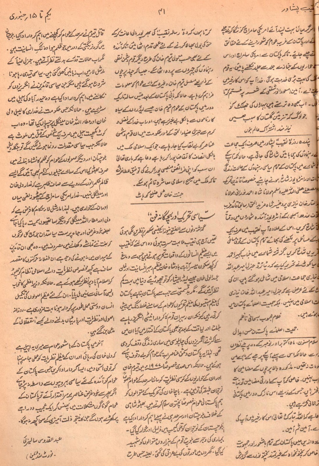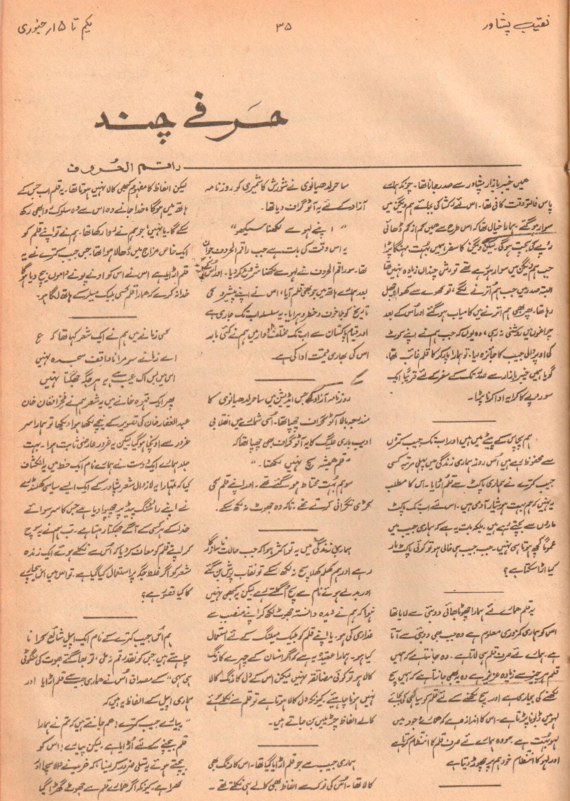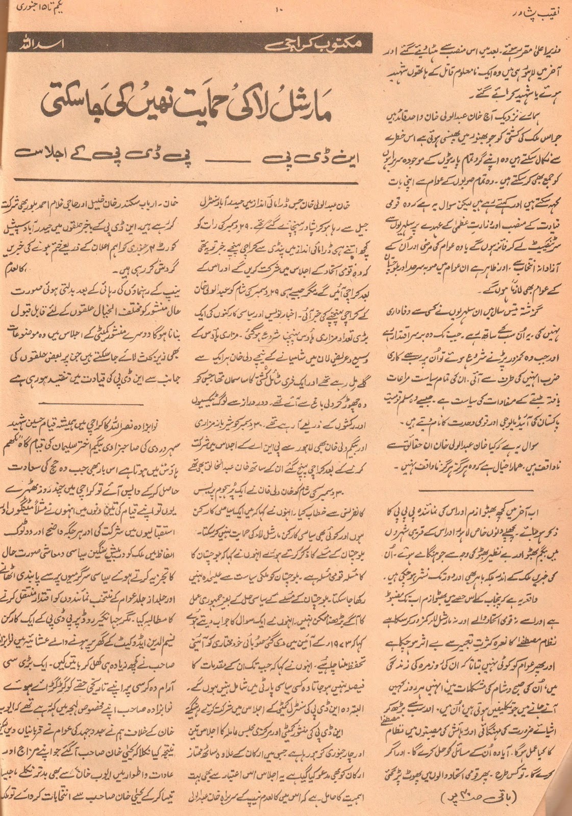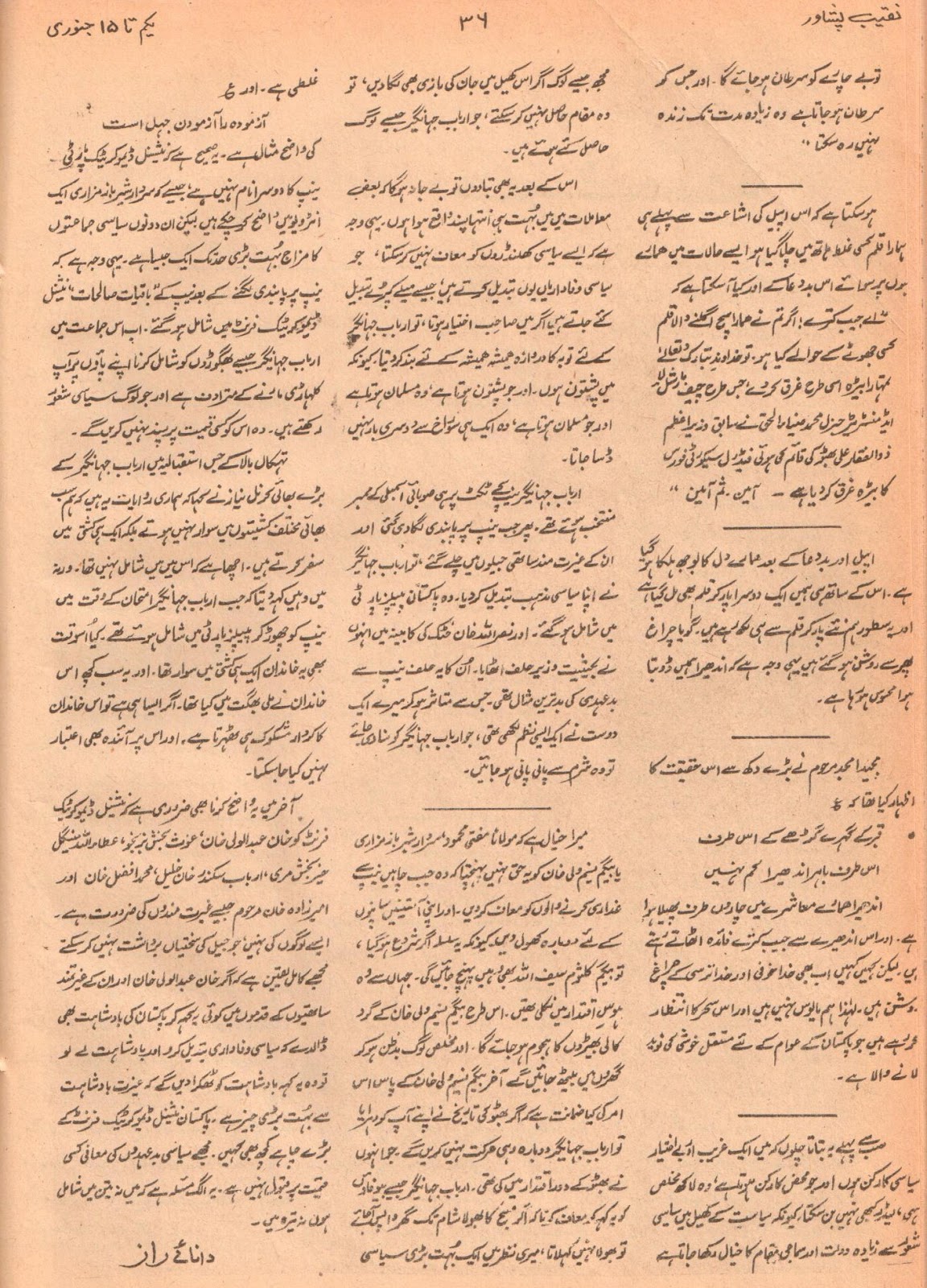 Naqeeb fortnightly published from Peshawar for around 2 years in late 1970s. Mustafa Kamal who was son of renowned journalists Master Khan Gul (who ran Bang-e-Haram) published it. Its leanings were progressive leftist. Would be posting more also.